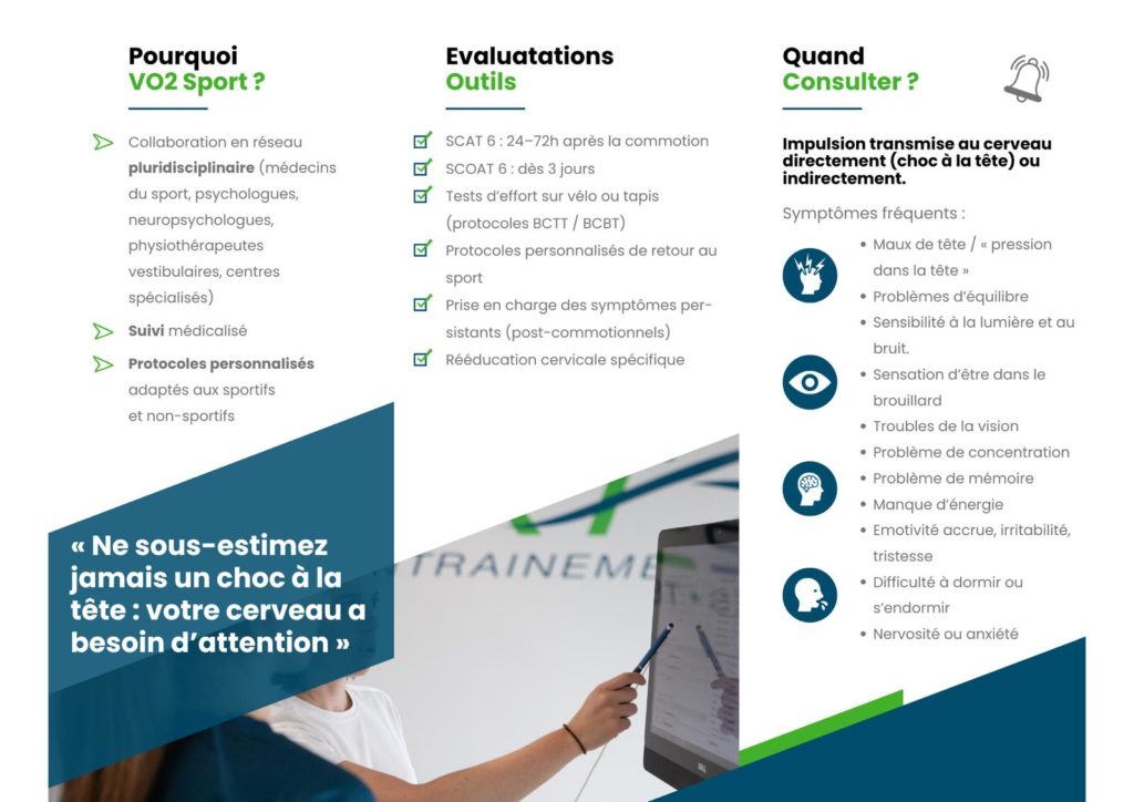 Au centre VO2 Sport, notre physiothérapeute Stéphanie Sanch est spécialisée dans la prise en charge des commotions cérébrales, de la phase aiguë jusqu’au retour complet au sport ou à l’activité professionnelle.